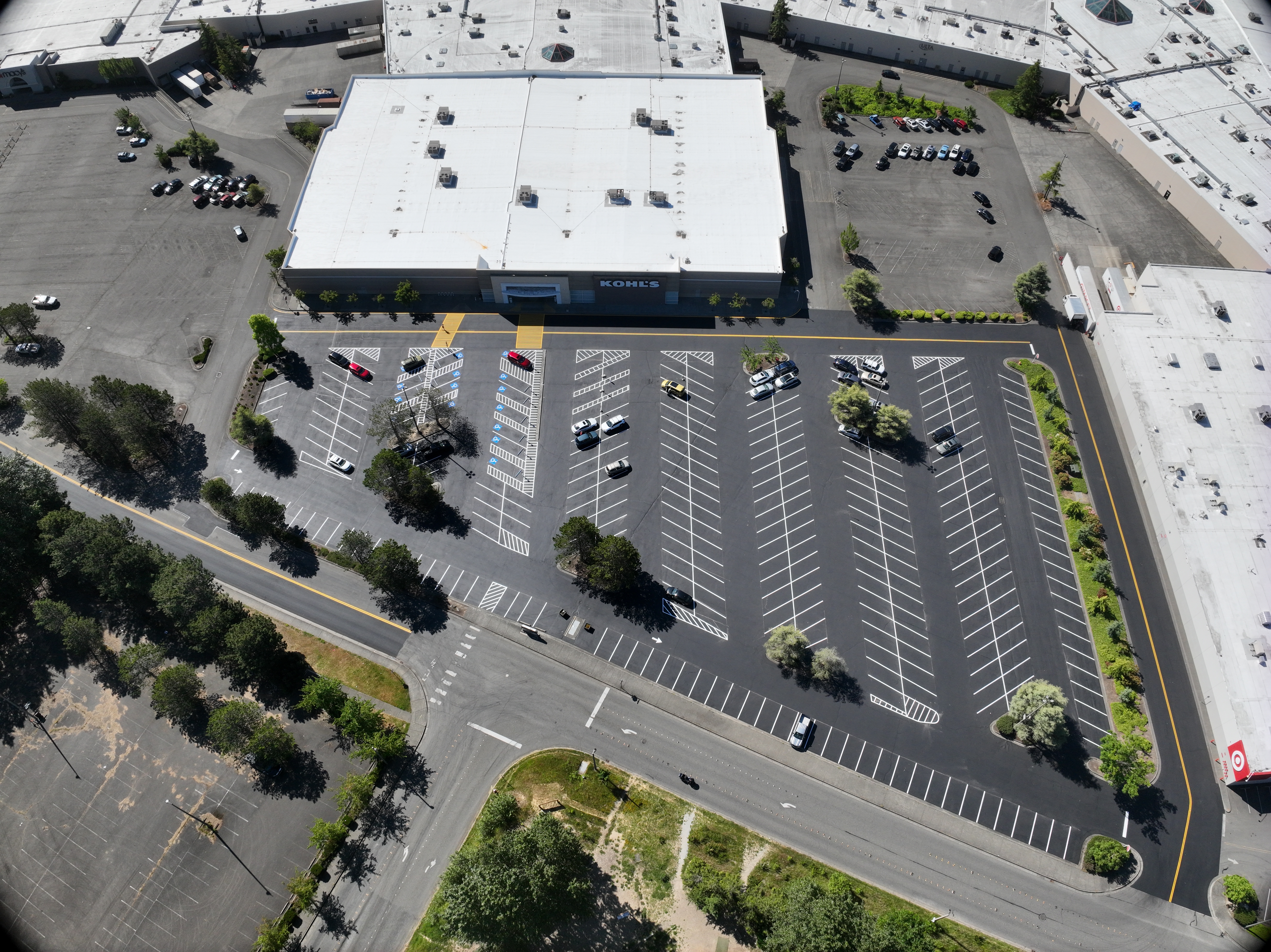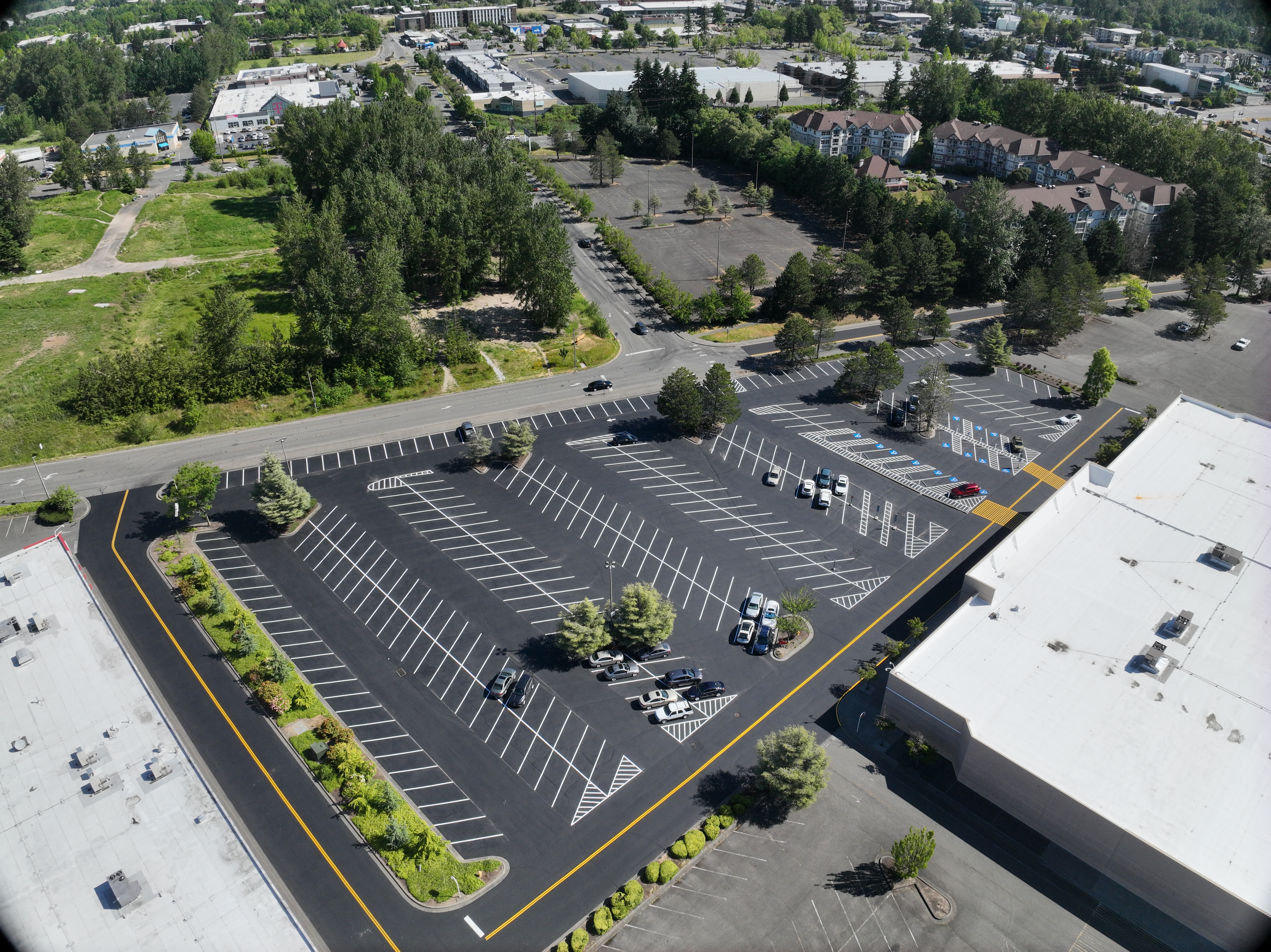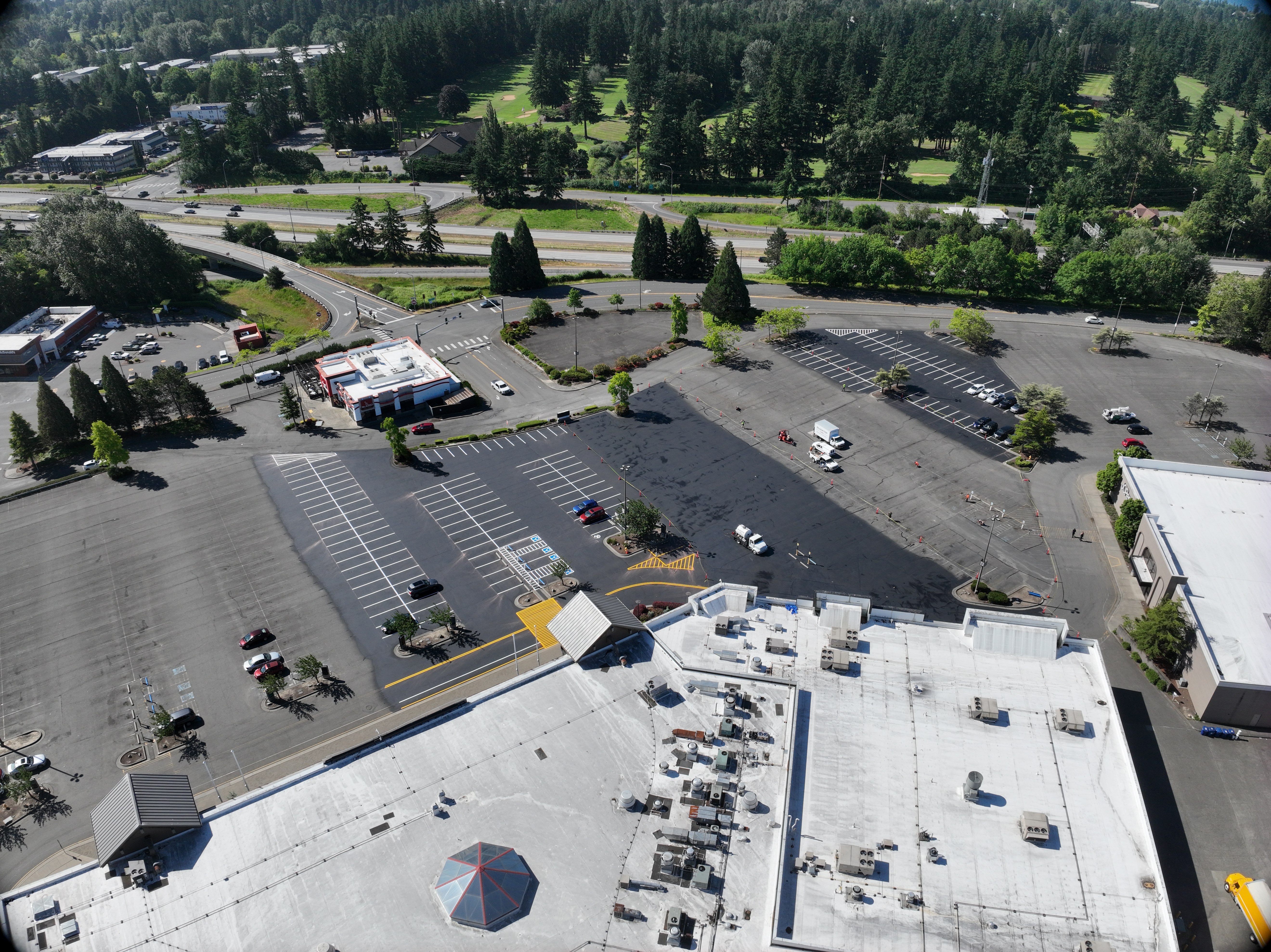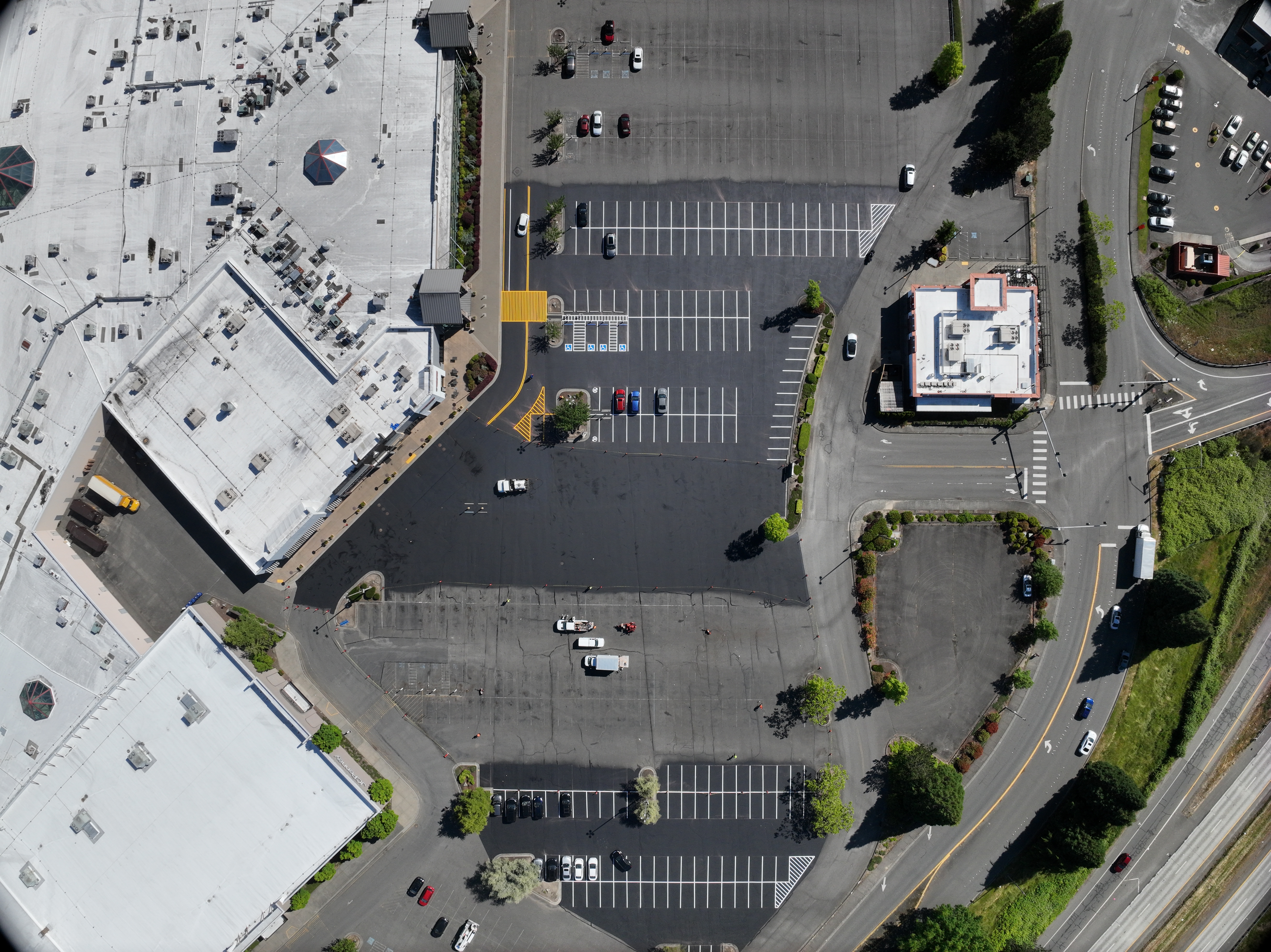 The Bellis Fair Mall asphalt maintenance project in Bellingham, WA included work from the grinding, paving, sealcoating, and striping crews to get the large project done on a tight timeline. WRS was able to give a 1,200-foot-long stretch of road outside the Bellis Fair Mall a much-needed update. 320,000 square feet of sealcoating and 23,000 linear feet of striping (almost 4.5 miles worth) went into this project.