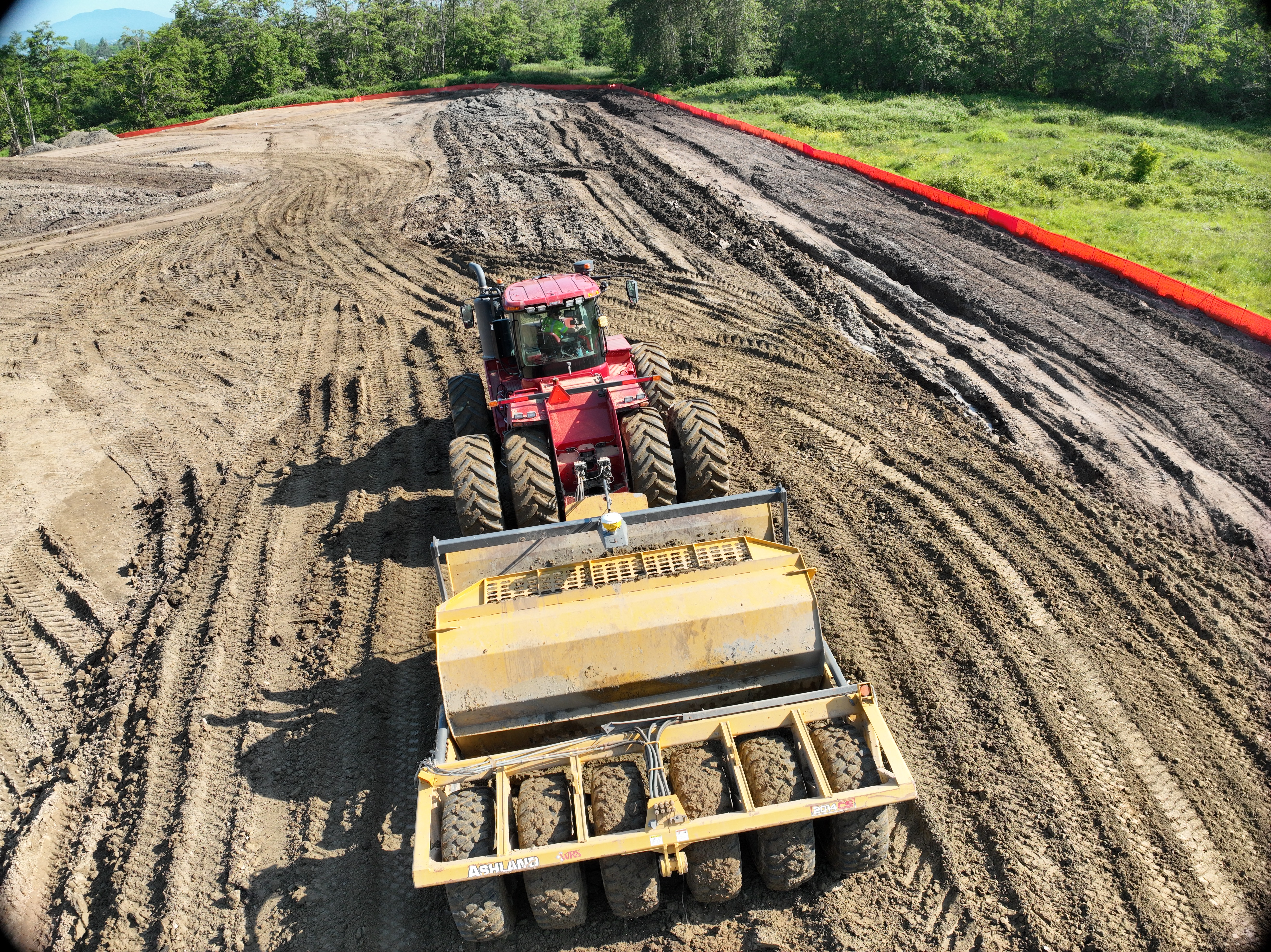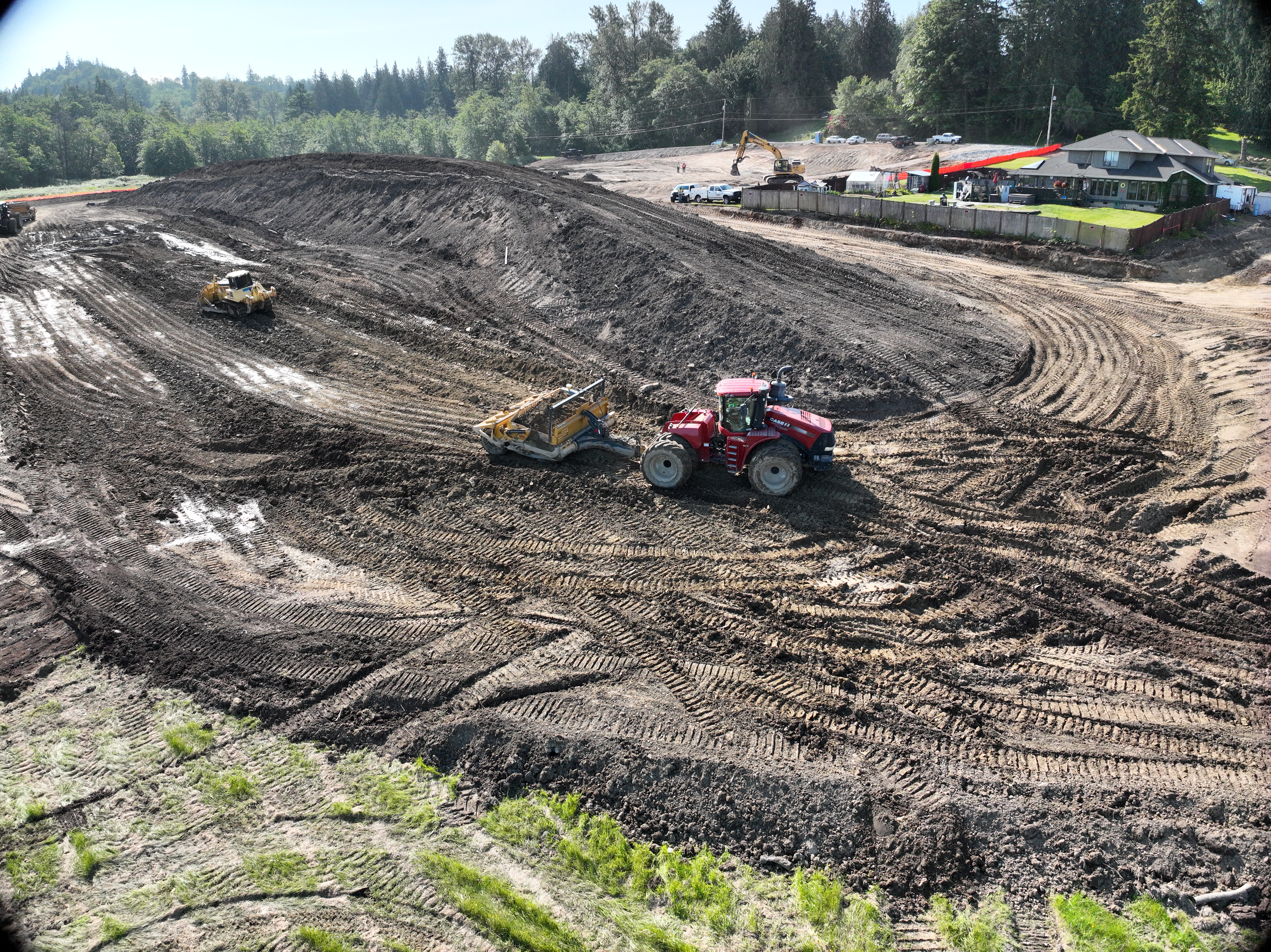 The Mountain Gate project in Mount Vernon, WA included work from the land-leveling crews doing a site strip of topsoil, cut/fill site balance, along with a stockpile for haul-off. The WRS scraper tractors moved a total of 64,200 cubic yards.