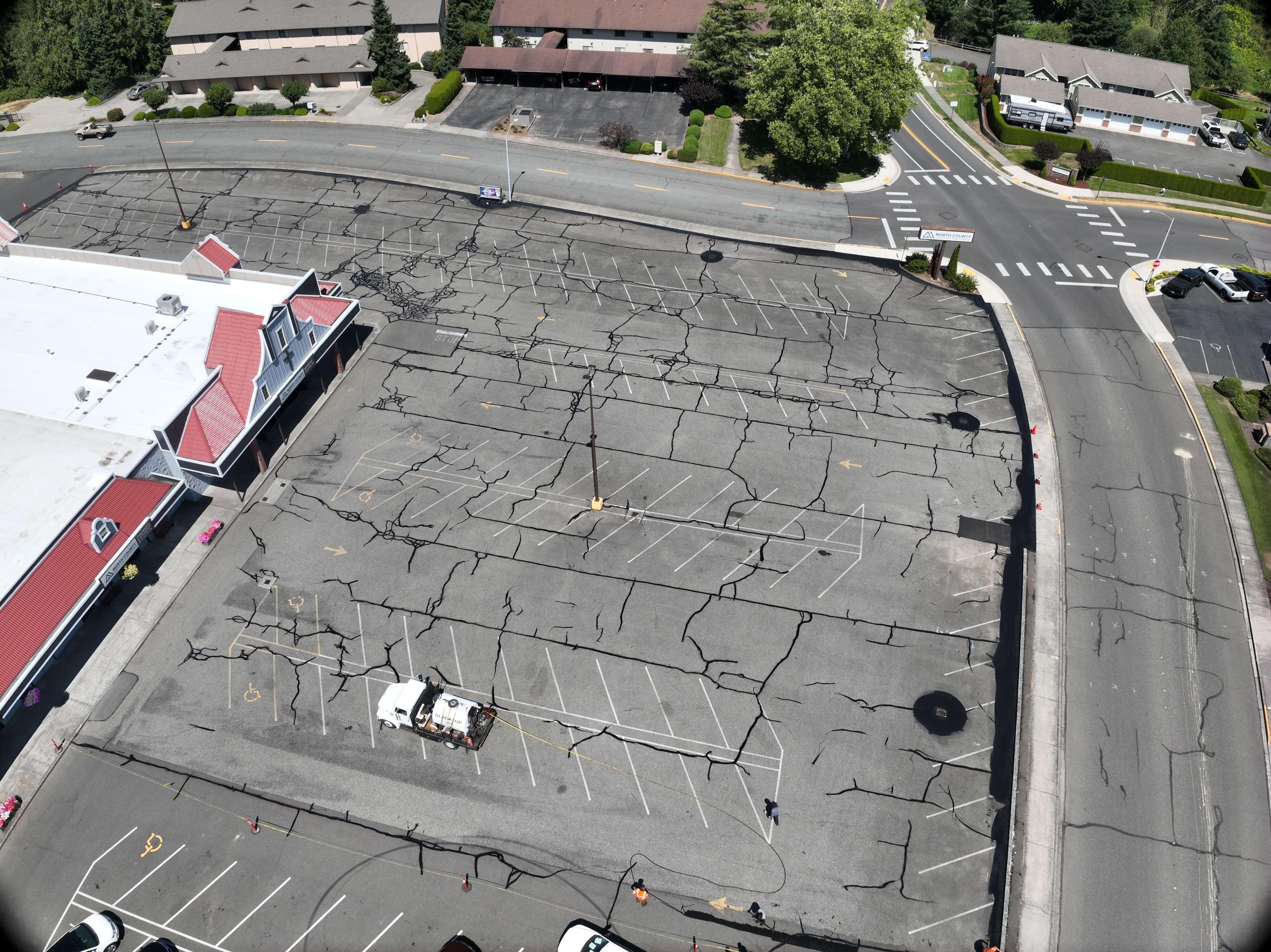 A full parking lot revamp that required 3,500 linear feet of crack-sealing, 48,300 linear feet of seal-coating, and total replacement of the existing pavement striping and marking.
